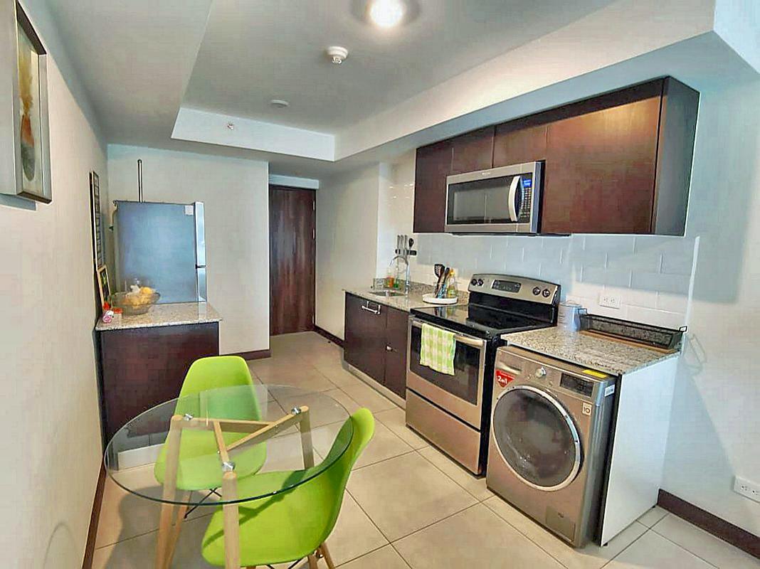 Completely furnished, with furniture and appliances, including stove, refrigerator, washer/dryer, TV, microwave, toaster, blender, rice cooker, etc. Everything you need!