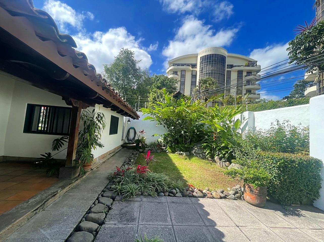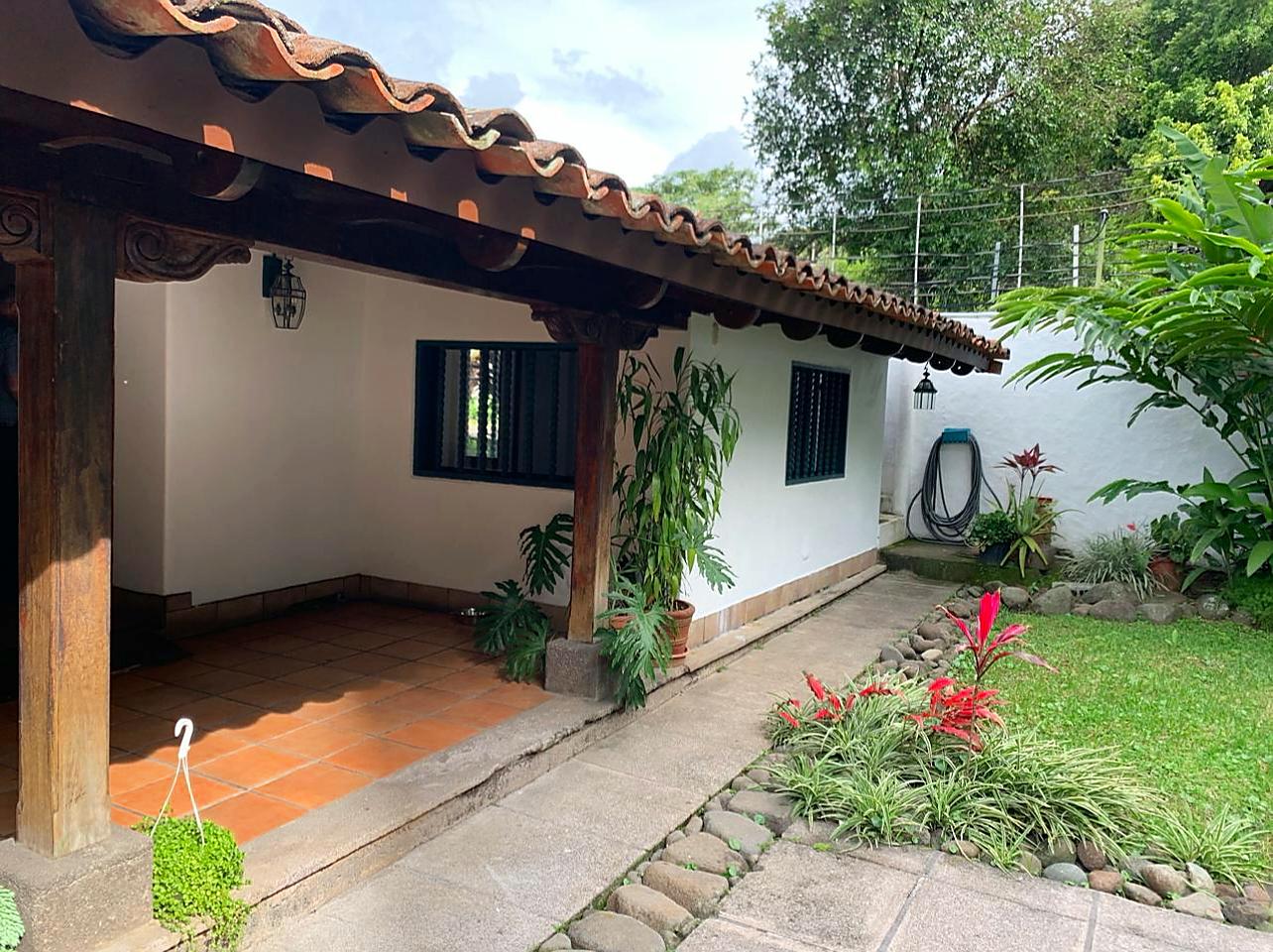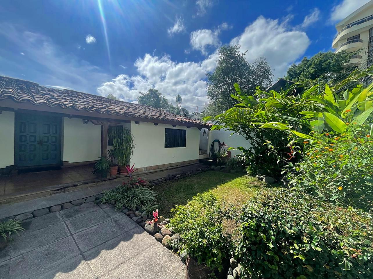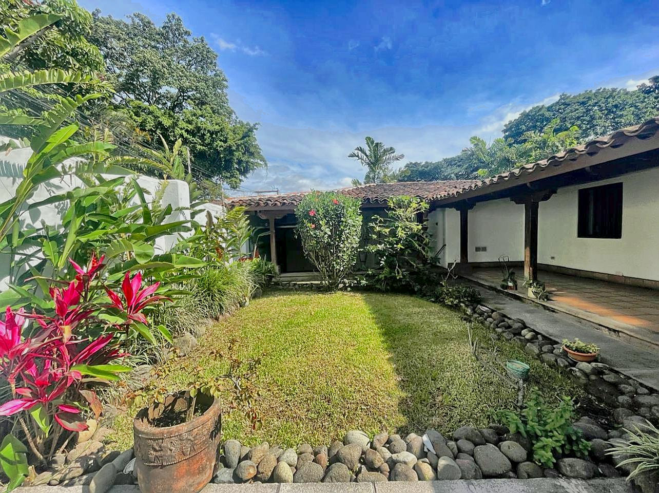 Escazú centro (Costa Rica) – Casa única de adobe de estilo colonial de una planta en una ubicación privilegiada. La casa es una antigua casa de adobe restaurada con encanto vintage. Fue remodelada con ampliaciones del mismo estilo, lo que le aporta carácter y paredes extra gruesas. La casa de 320 m², en un terreno de 410 m², cuenta con 3 dormitorios, 2.5 baños y cuarto de servicio con baño. Garaje para dos autos.