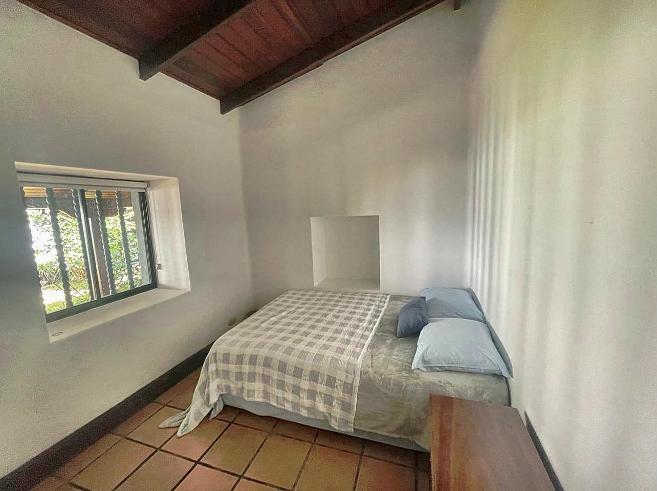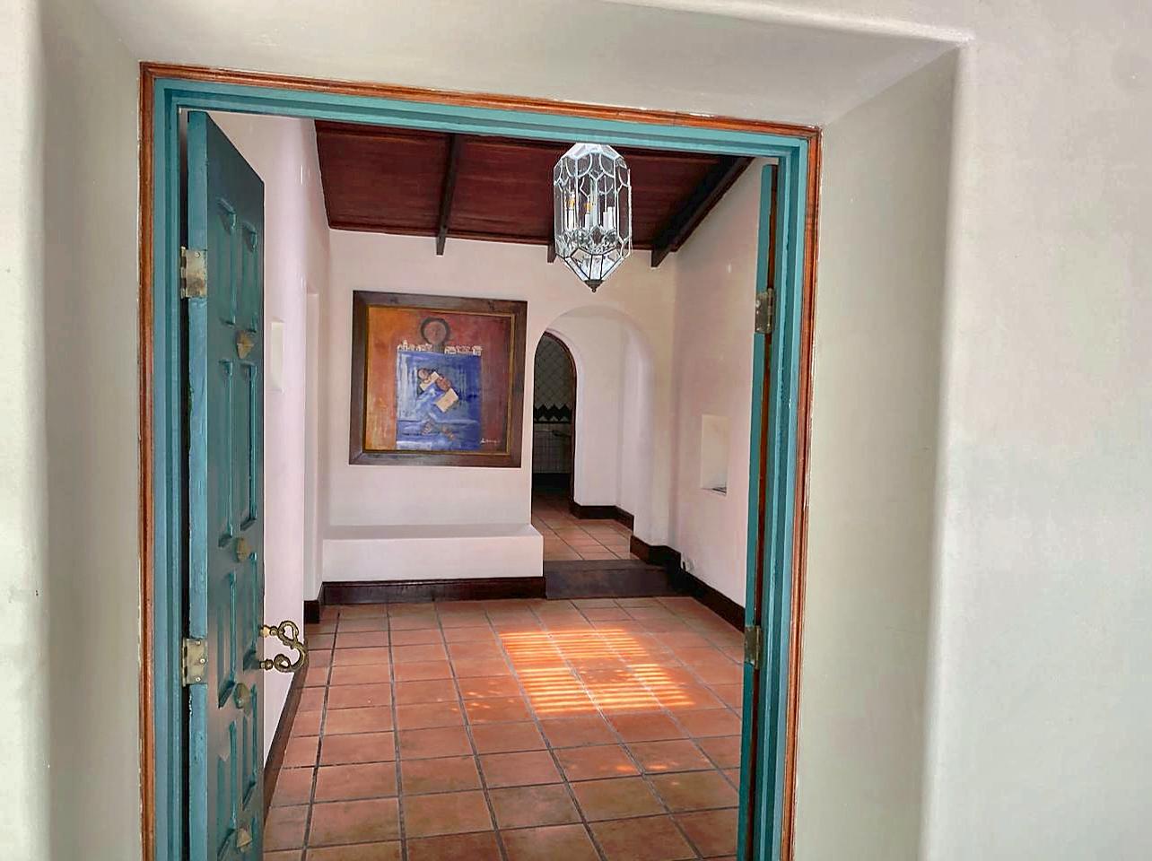 Los amplios dormitorios están a la izquierda, junto con 2.5 baños, oficina y sala de televisión. Todas las áreas conservan el estilo de adobe con maderas nobles. Además, el techo se conserva con tejas de época. Todos los techos tienen acabados decorativos de madera maciza. También cuenta con numerosas vigas y columnas de madera maciza como elementos interesantes.
