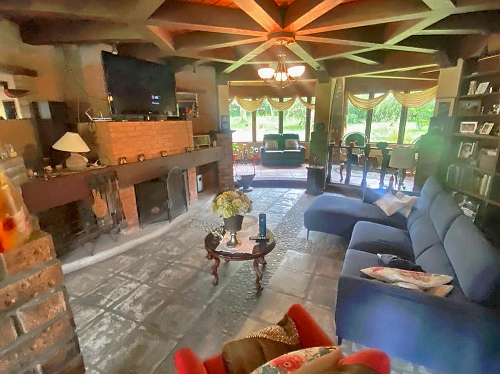 Increíble casa grande de calidad con carácter. Estilo Toscano con techos altos, ladrillo, tejas de piedra y maderas preciosas. Basado alrededor de un octágono, con muchas características interesantes y varias áreas de estar/comedor. Sala de TV y biblioteca en el centro del octágono. Vistas y jardine privados. Tejas de calidad de estilo antiguo en el techo de diferente niveles. Escondida detrás de un portón eléctrico, con casas cerca de la entrada, esta propiedad es segura y privada, ubicada al final de la calle privada.