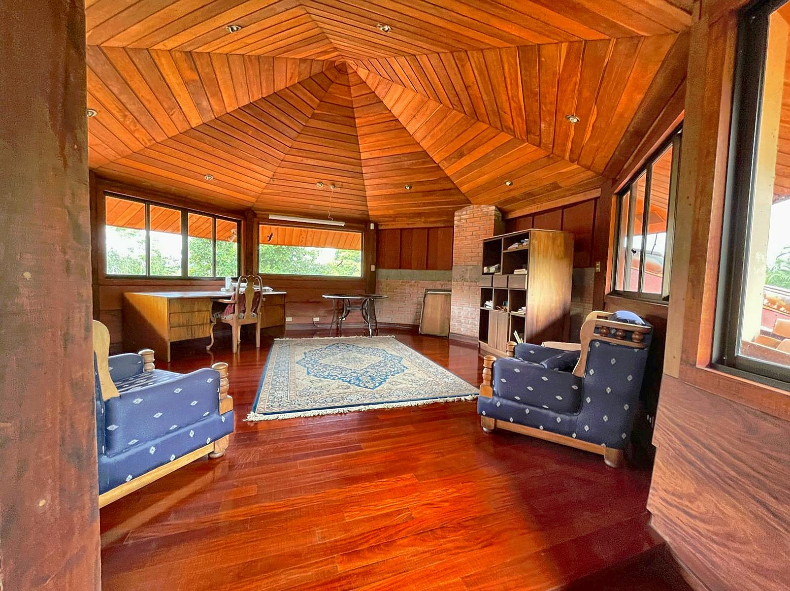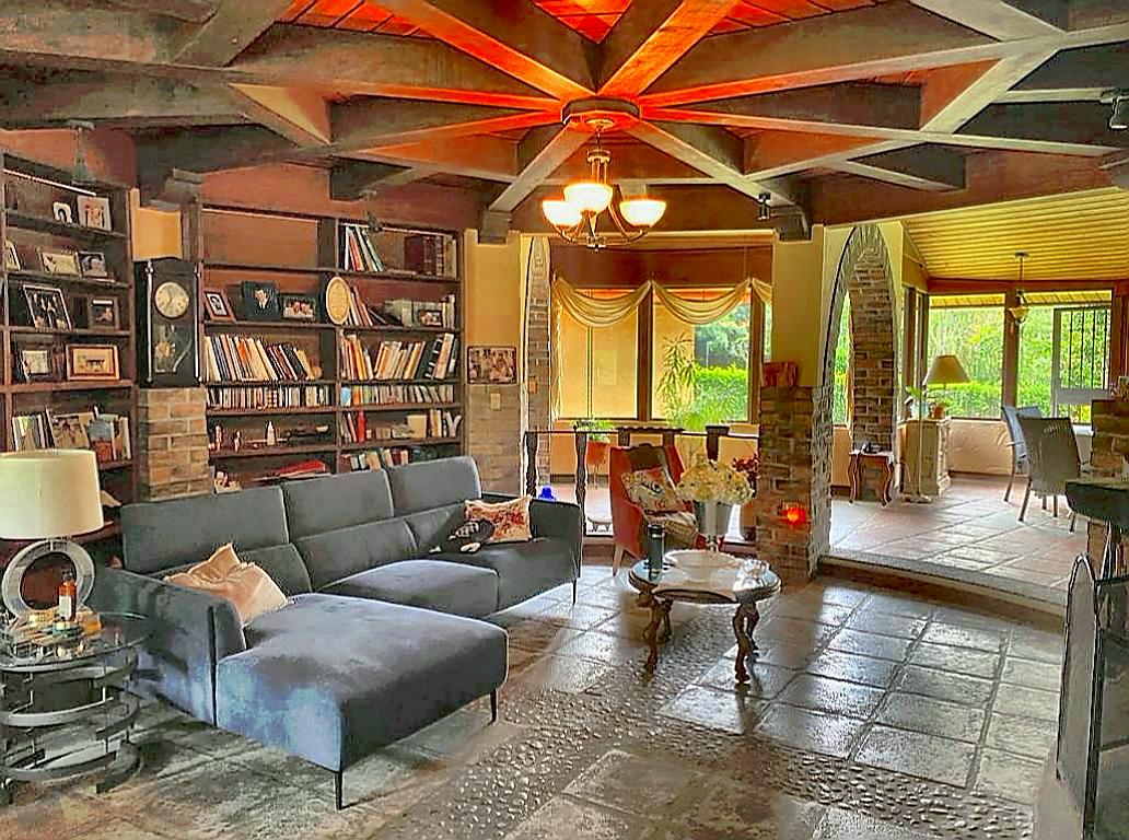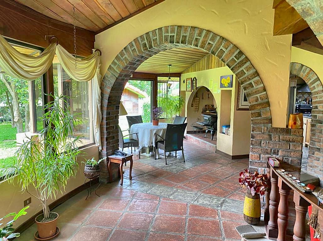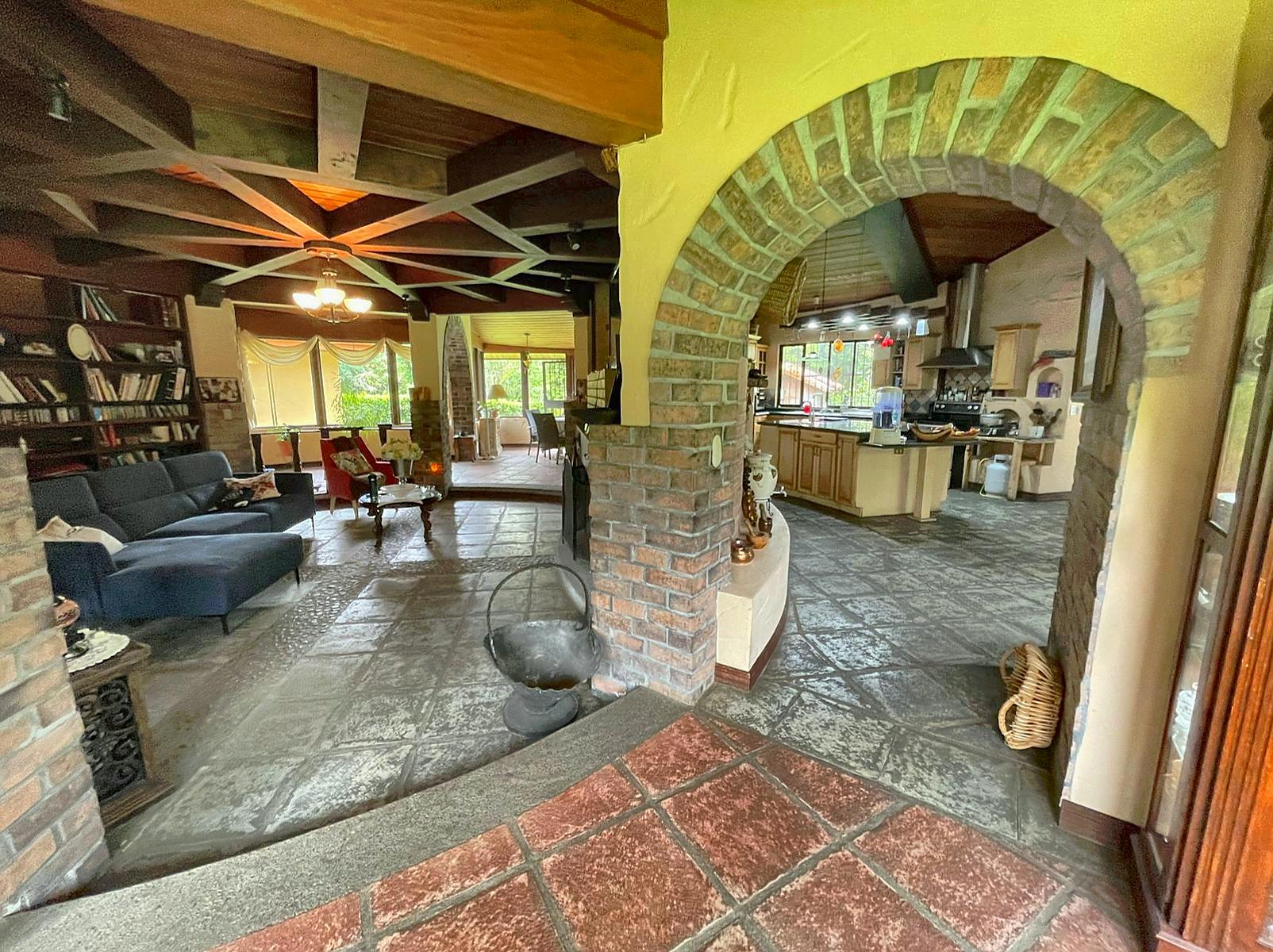La casa fue construida para el uso de los propietarios, por lo que se utilizaron maderas duras de la mejor calidad, pisos de piedra natural, ladrillos y muchos mas detailles. Todos los techos son altos y tienen maderas preciosas naturales, incluidas las escaleras y algunos pisos. Dos chimeneas. Casa con mucha luz, estilo abierta con gran cocina gourmet moderna. El enorme dormitorio principal es privado por un lado con su propia sala de estar, chimenea, walk-in closets, y vistas a los jardines. Otros dos dormitorios y baño en el otro lado de la casa, con escaleras hasta la oficina con vistas. Lavandería independiente con posible cuarto de servicio. Cochera techada para 3 carros, y estacionamiento para muchos más.